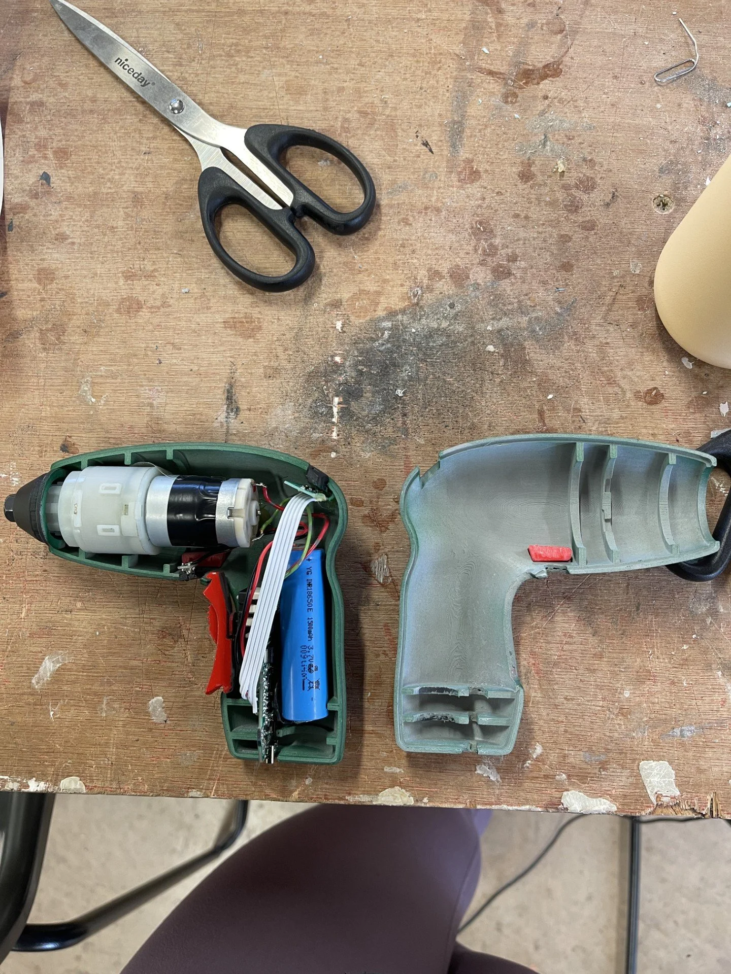 Using the internal components of an existing hand drill, I replicated this on CAD in order to construct a redesign of the external casing in line with the ‘Bosch’ brand aesthetics.